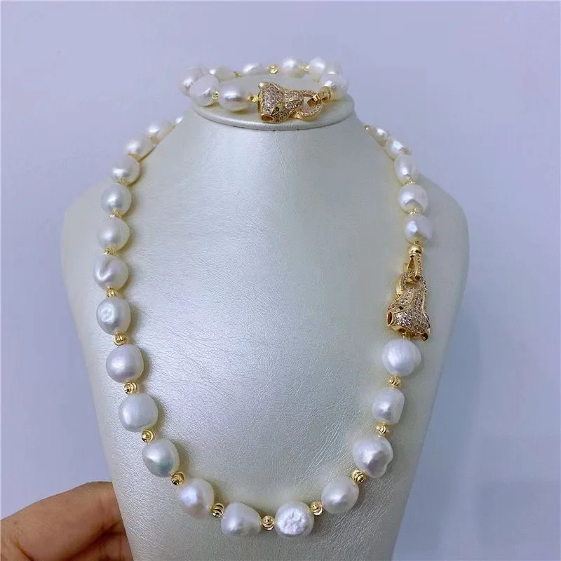 Natural Freshwater 10-11mm Baroque Pearl Choker Necklace BraceletJewelry Set