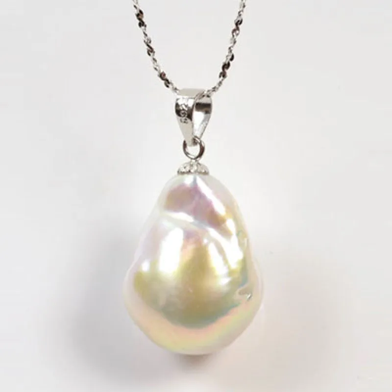 White Large FireBall Baroque Pearl 18 inches 14x20mm 925 Silver Pendent Necklace