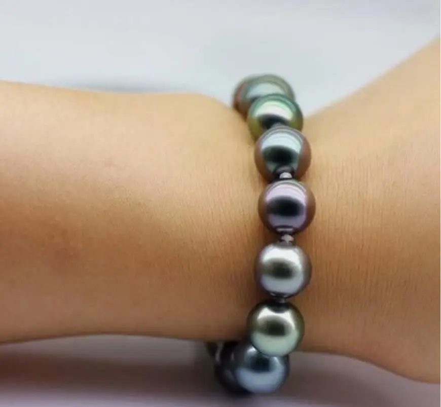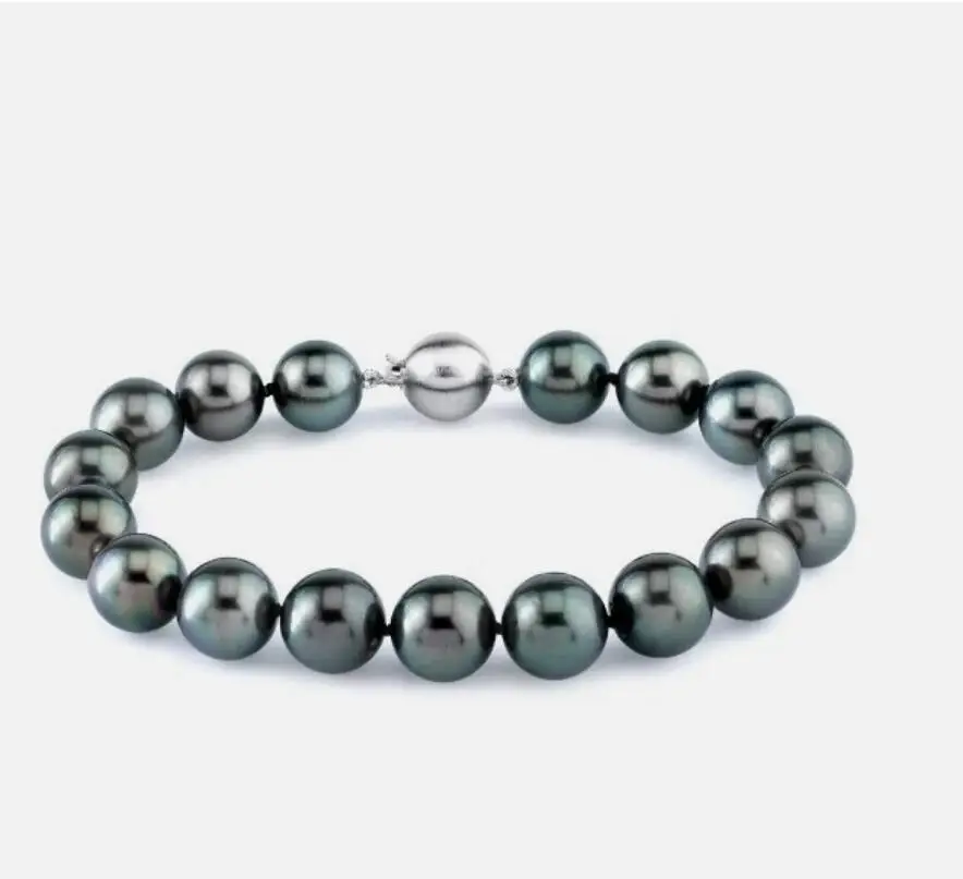 7.5" 10-9MM TAHITIAN GENUINE BLACK ROUND PEARL 925s BRACELET
