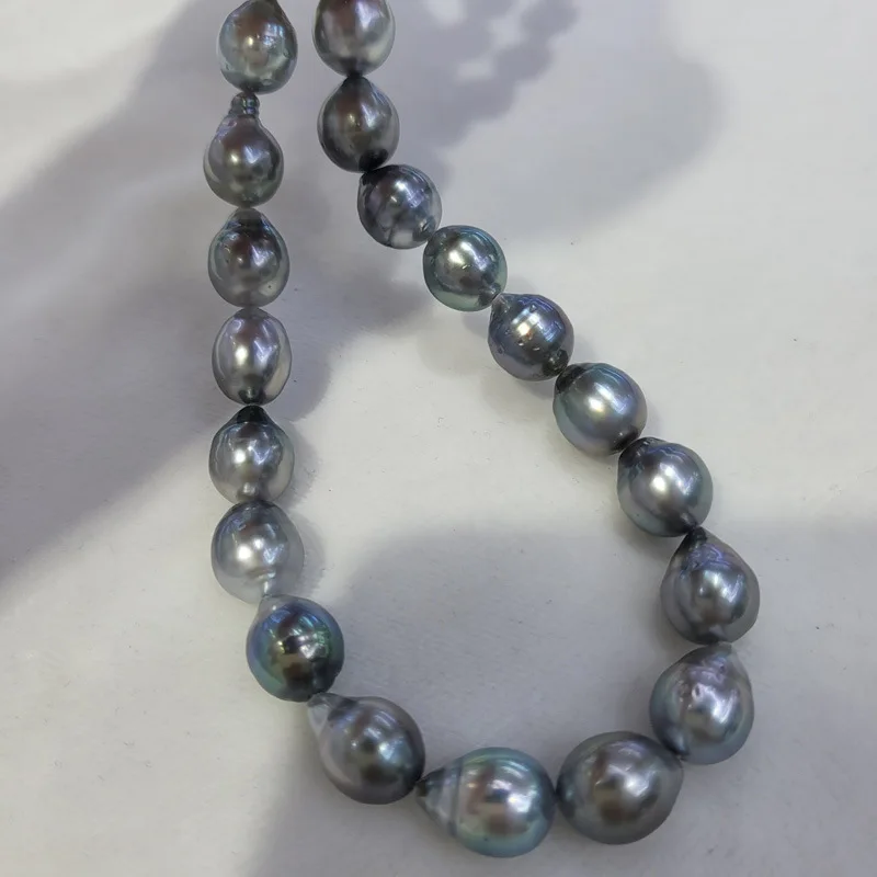 9-10mm Natural Tahitian Baroque Pearl Necklace, Unique Irregular South Sea Black Pearl Statement Jewelry with Sterling Silver