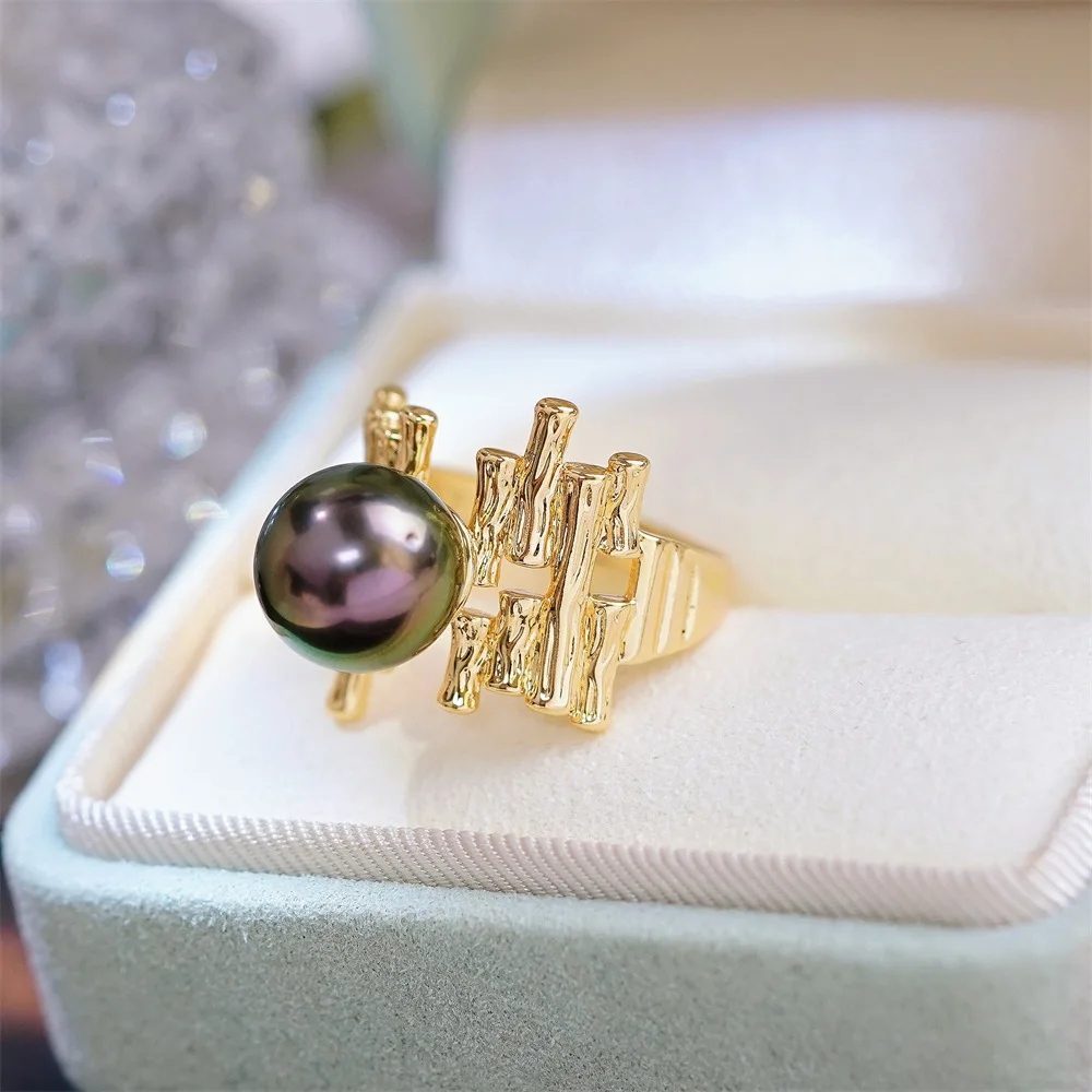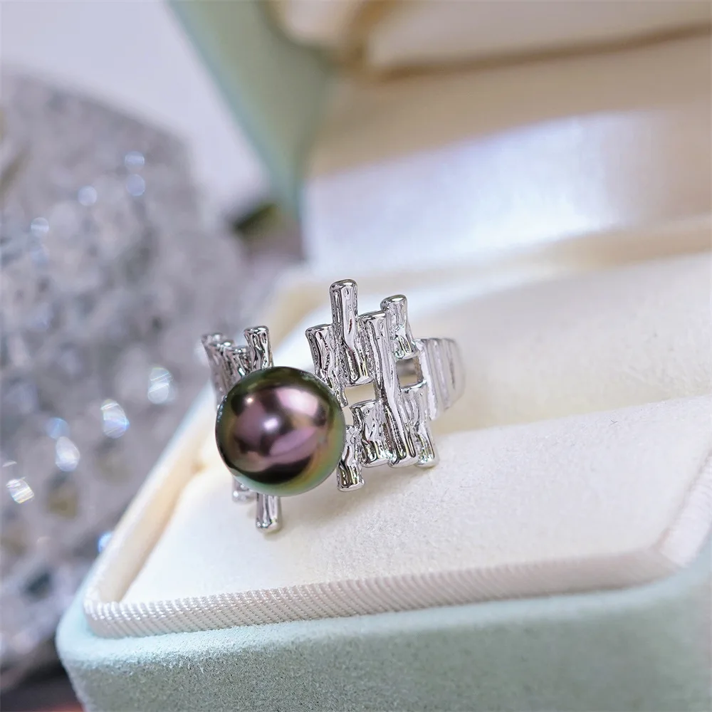 Tahitian black Rond AAA+++ 10-11mm 9-10MM Shining Zircon Open Ring