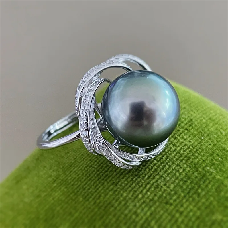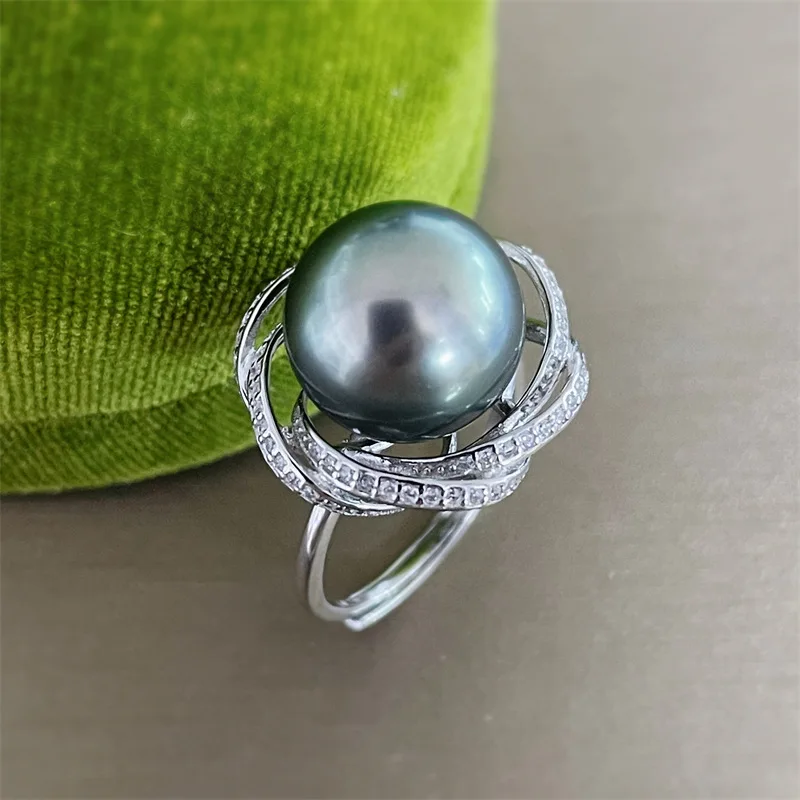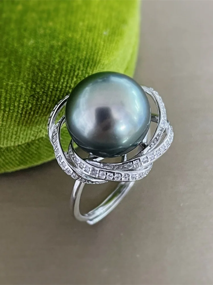 Natural Tahitian Black Round pearl AAAA+ 12-13mm 925 Silver Designer Huge Ring