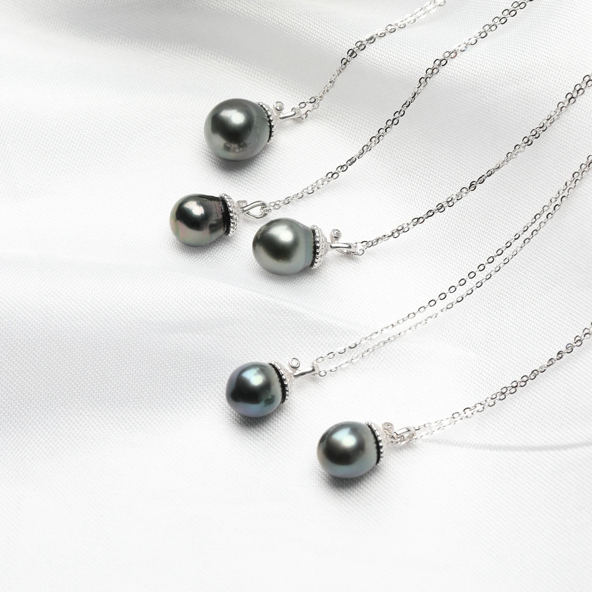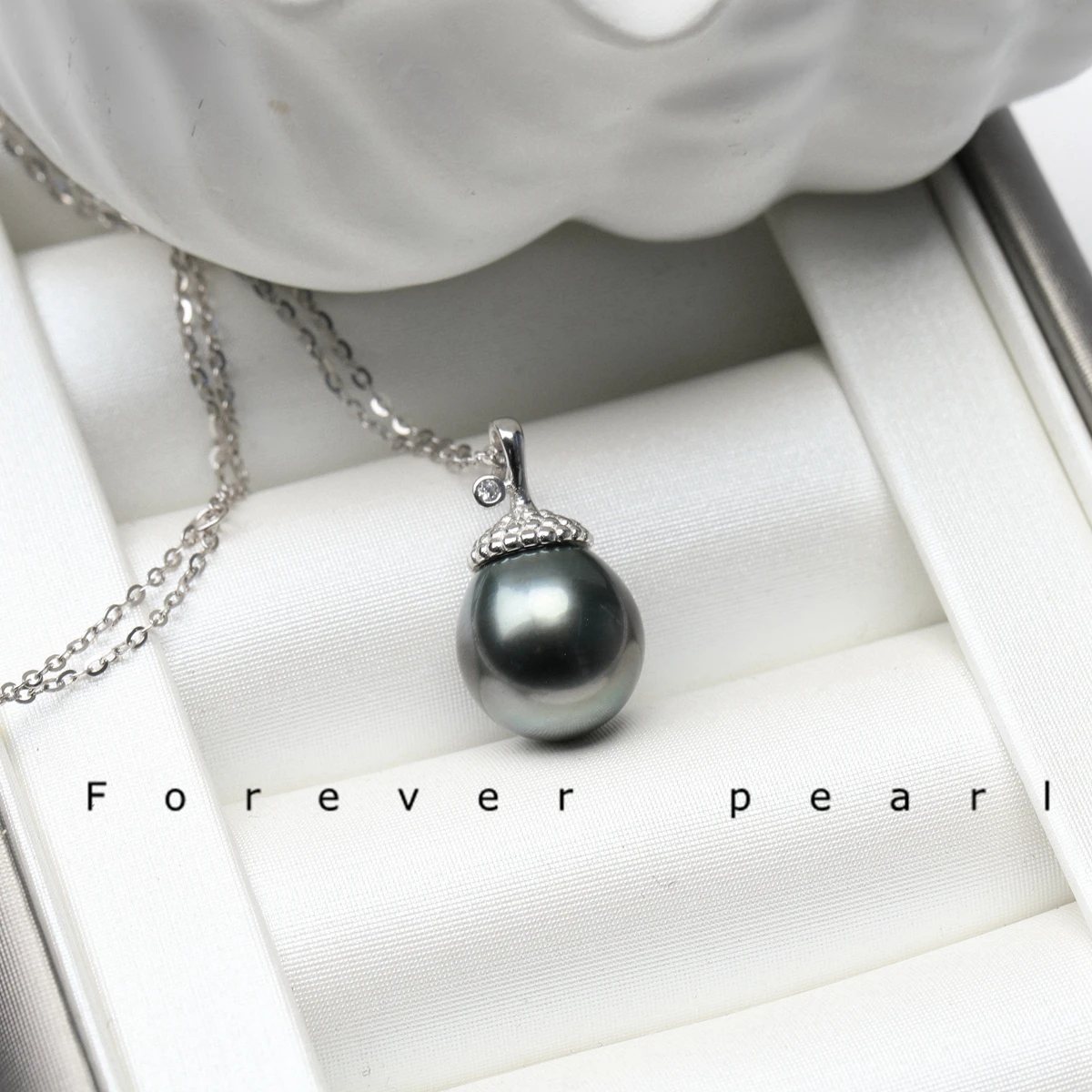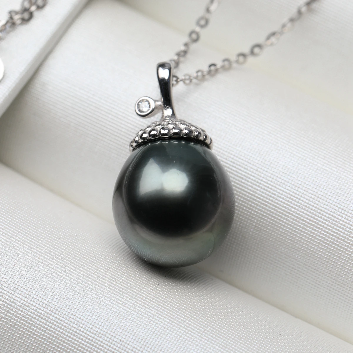 Luxury and Noble 9-11mm Natural Sea Water Black Tahitian Pearl Pinecone Pendant Necklace S925 Sterling Silver Charm Jewelry