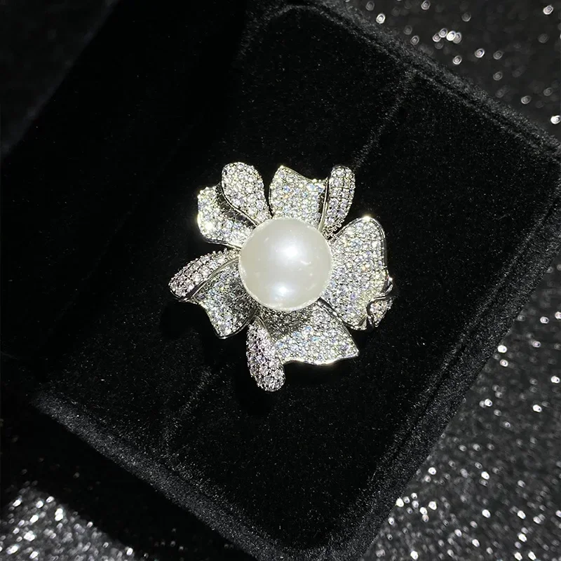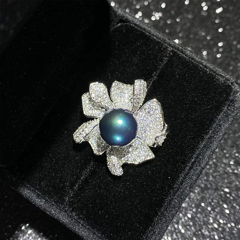 natural pearl beads ring gold-plated Tahitian black flowers temperament match finger ring