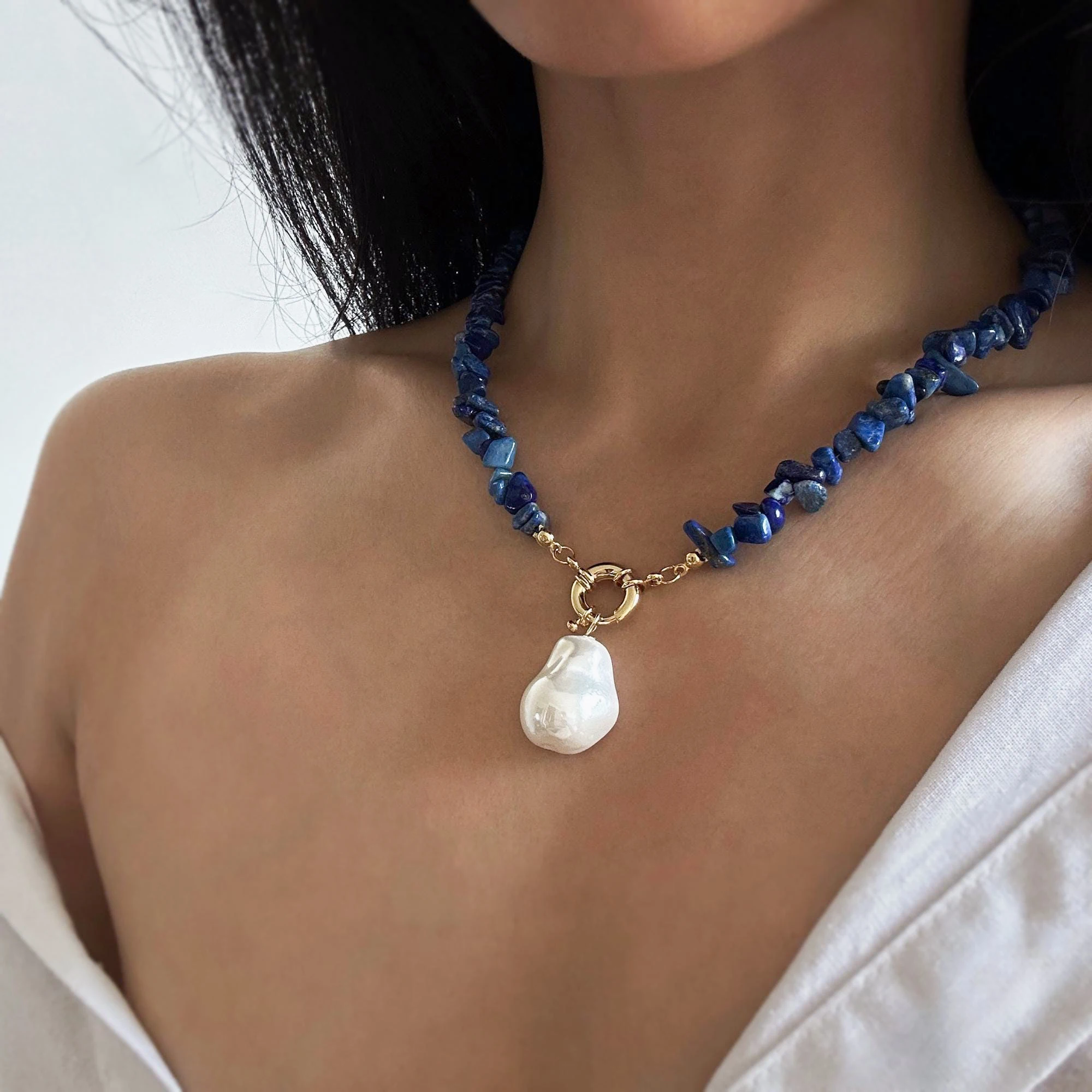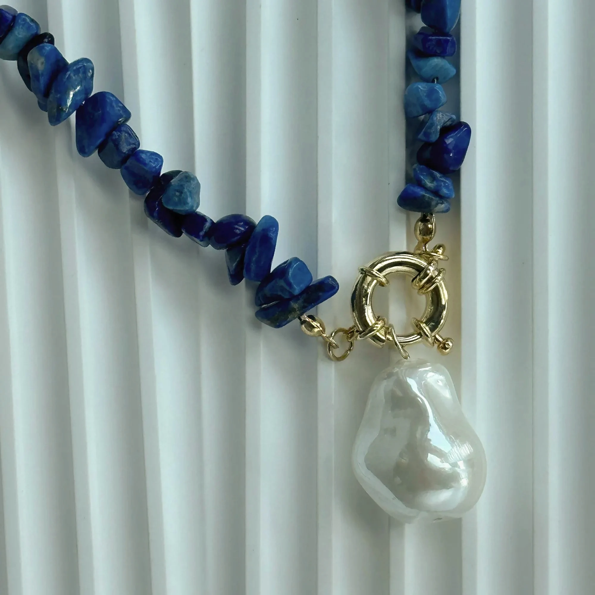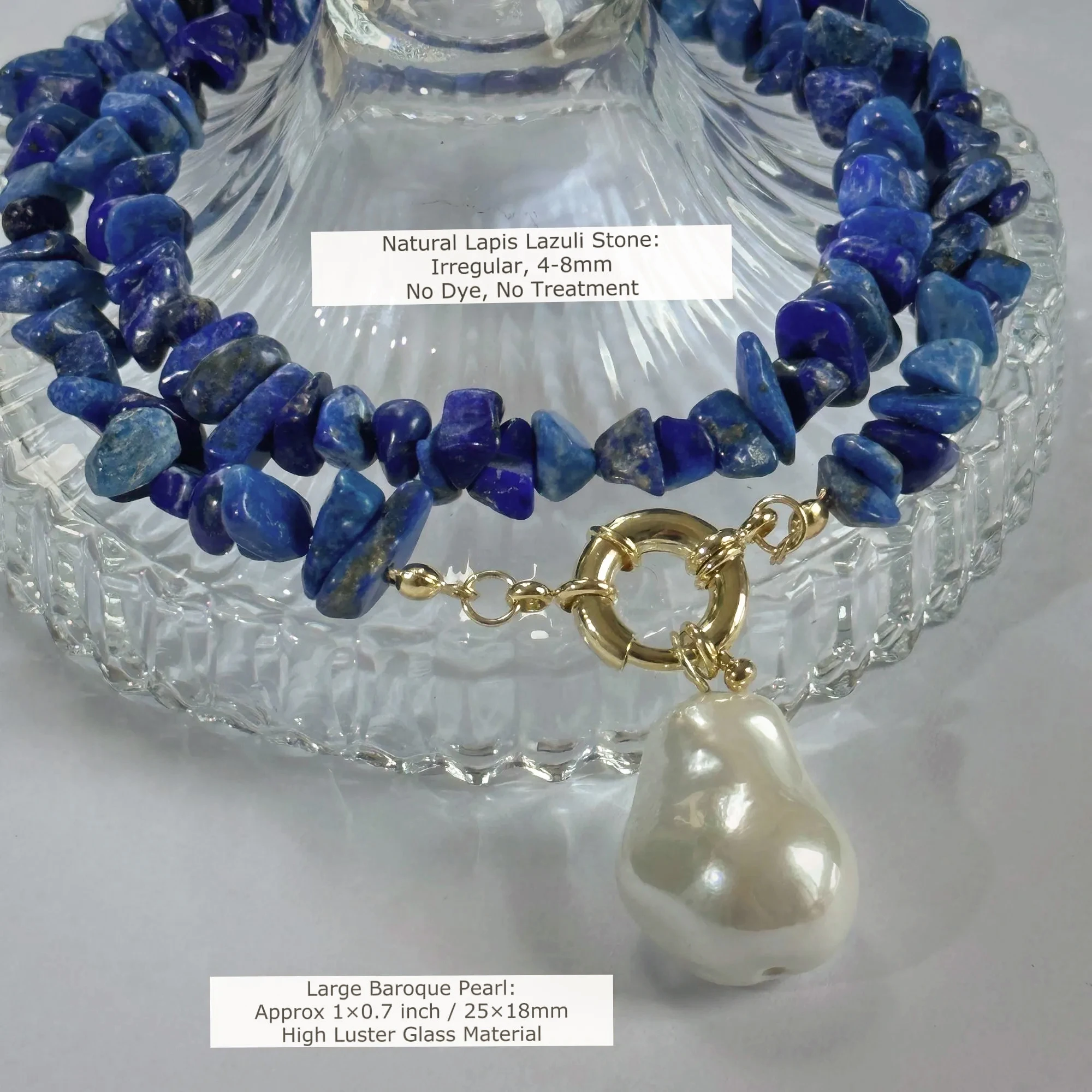 • Material: High Luster Glass Baroque Pearl, Natural Lapis Lazuli Stone -No Dye, No Treatment, High Quality Brass Hardware -Tarnish Free