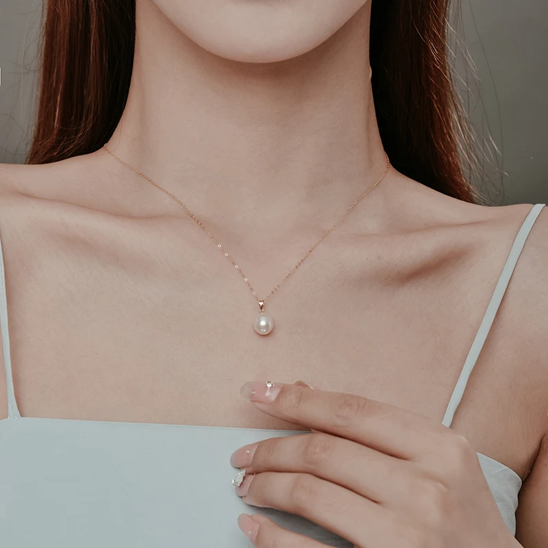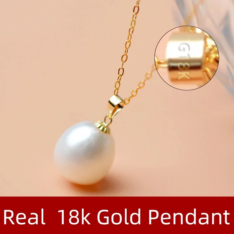 18K Gold Pure Natural Freshwater Drop Pearl Pendant Necklace