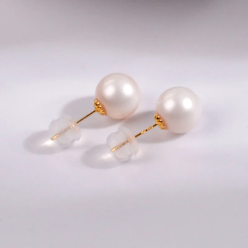 18K Gold Natural Freshwater Necklace Pendant Earrings AU750 Round