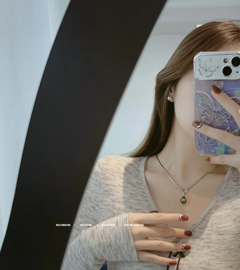 Tahitian Seawater Black Pearl Pendant Necklace For Women Girls Real 925 Silver High Quality Unique Jewelry Gifts