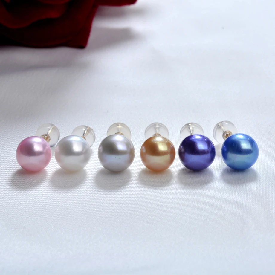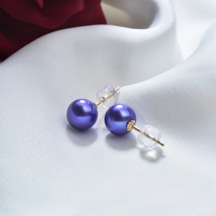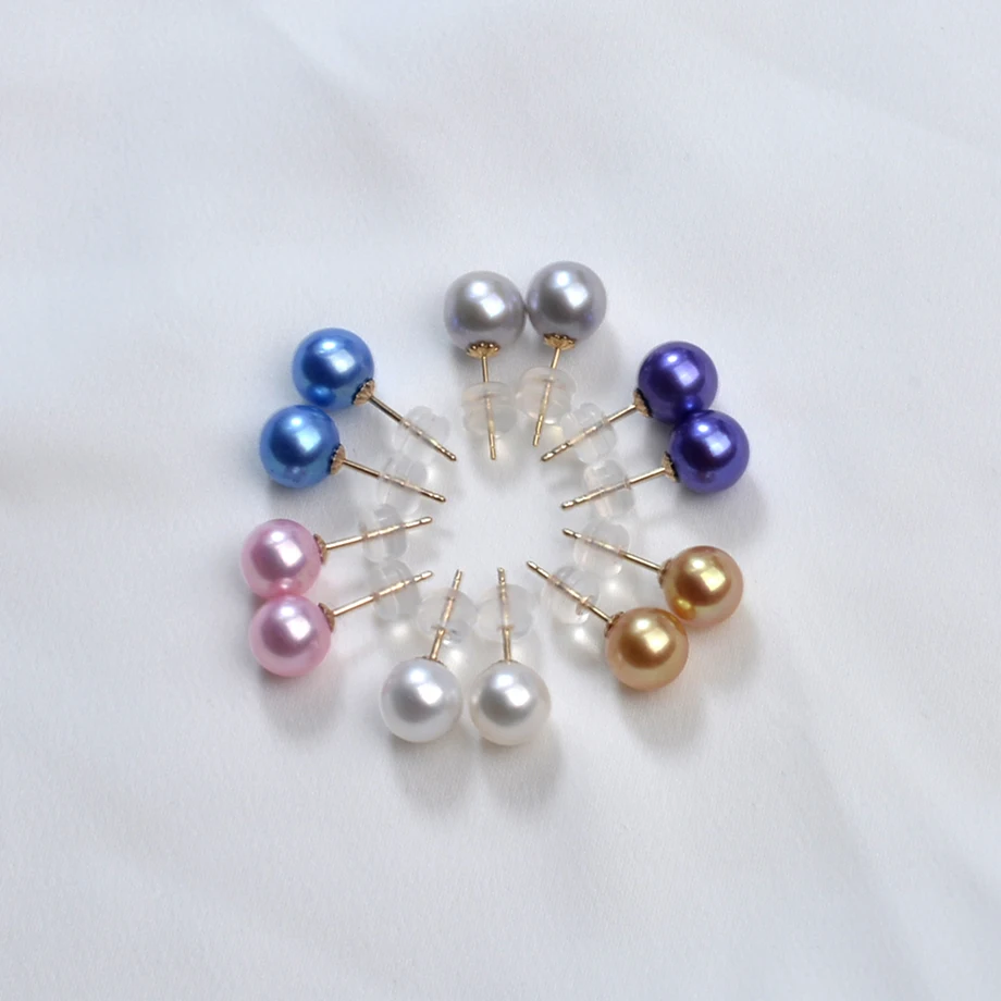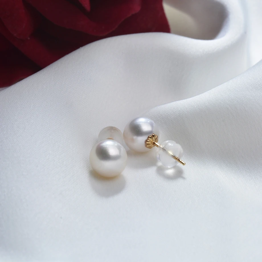 Real Natural Freshwater Pearl 18k Gold Stud Earrings